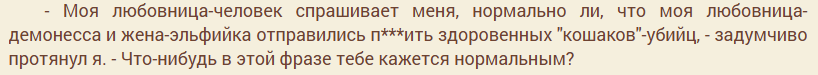 Это сбивает. Сильно. Однако, сюжет, герои, юмор, напряжение позволяют (заставляют и принуждают!) не обращать внимание даже на большие "косяки". Да и нельзя быть идеальным во всём. Вот и автор - оказался не идеален. Увы.