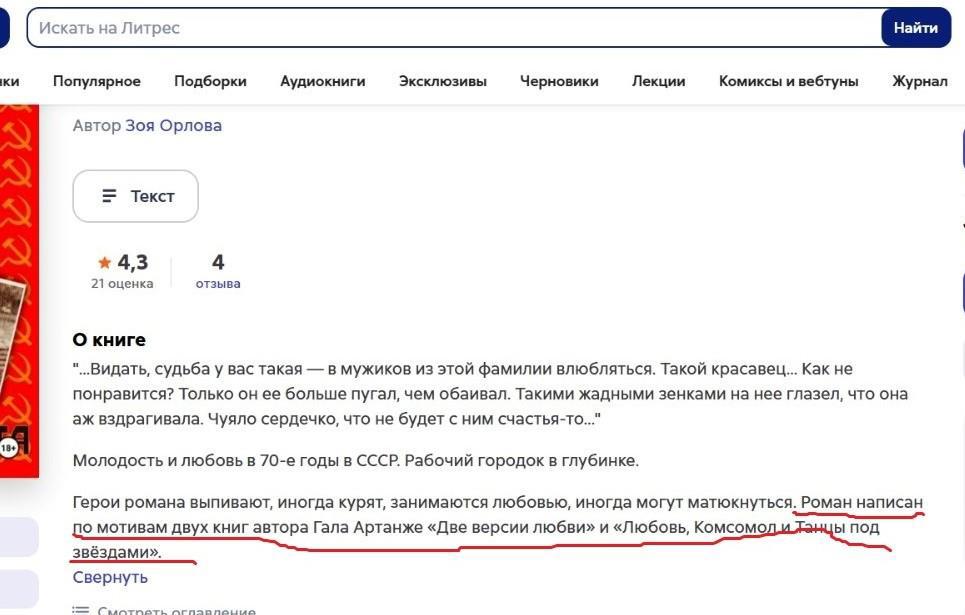 Оба этих романа-на 80% автобиографичны, а она разорвала их на куски, повставляла между своими текстами и потопталась по моей истории своими грязными сапогами (много эротических откровенных сцен, которые у меня были только намёками). Я настаиваю , чтобы специалисты АвторТудэй отреагировали на это сообщение и убрали её книгу из публикации. Я сама предлагала ей убрать, переписать без моих сюжетных событий и моих выражений (моя стилистика), оставить только своё и переопубликовать заново. Но она отказалась. Ей проще было упомянуть мои книги и затем отказаться эт этой метки.