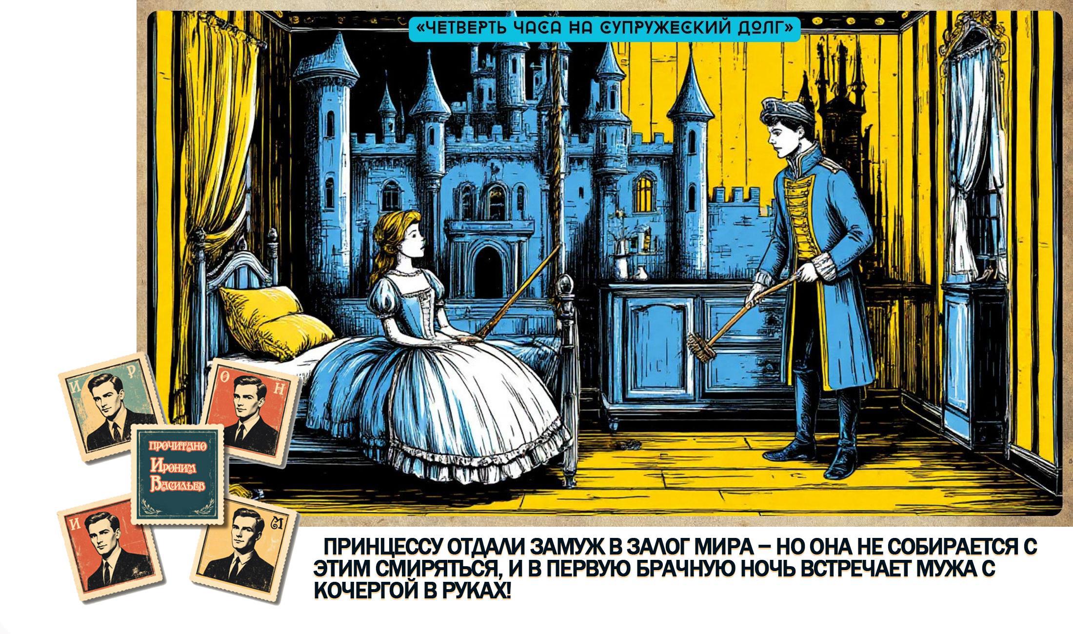 Перед нами история, которая начинается с кочерги. С неё всё и начинается — с этой железной палки в руках принцессы, встретившей своего нового мужа не с покорностью, а с вызовом. «Какой неласковый приём! — насмешливым тоном вступил он в переговоры, впрочем, не рискуя подходить слишком близко». Это первая сцена, которая задаёт тон всему последующему повествованию: два врага, запертые в одном пространстве, вынужденные быть ближе, чем они того хотели бы.