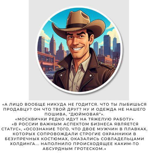 Все эти цитаты с точностью до запятой демонстрируют одну простую вещь: автор создаёт не живую, многогранную Россию, а некий стереотипный симулякр, собранный из обрывков чужих статей, голливудских фильмов и собственных фантазий. Это не взгляд изнутри, это взгляд человека, который стоит за стеклом и пытается угадать, что же творится в этом загадочном доме. И, увы, чаще всего он ошибается.