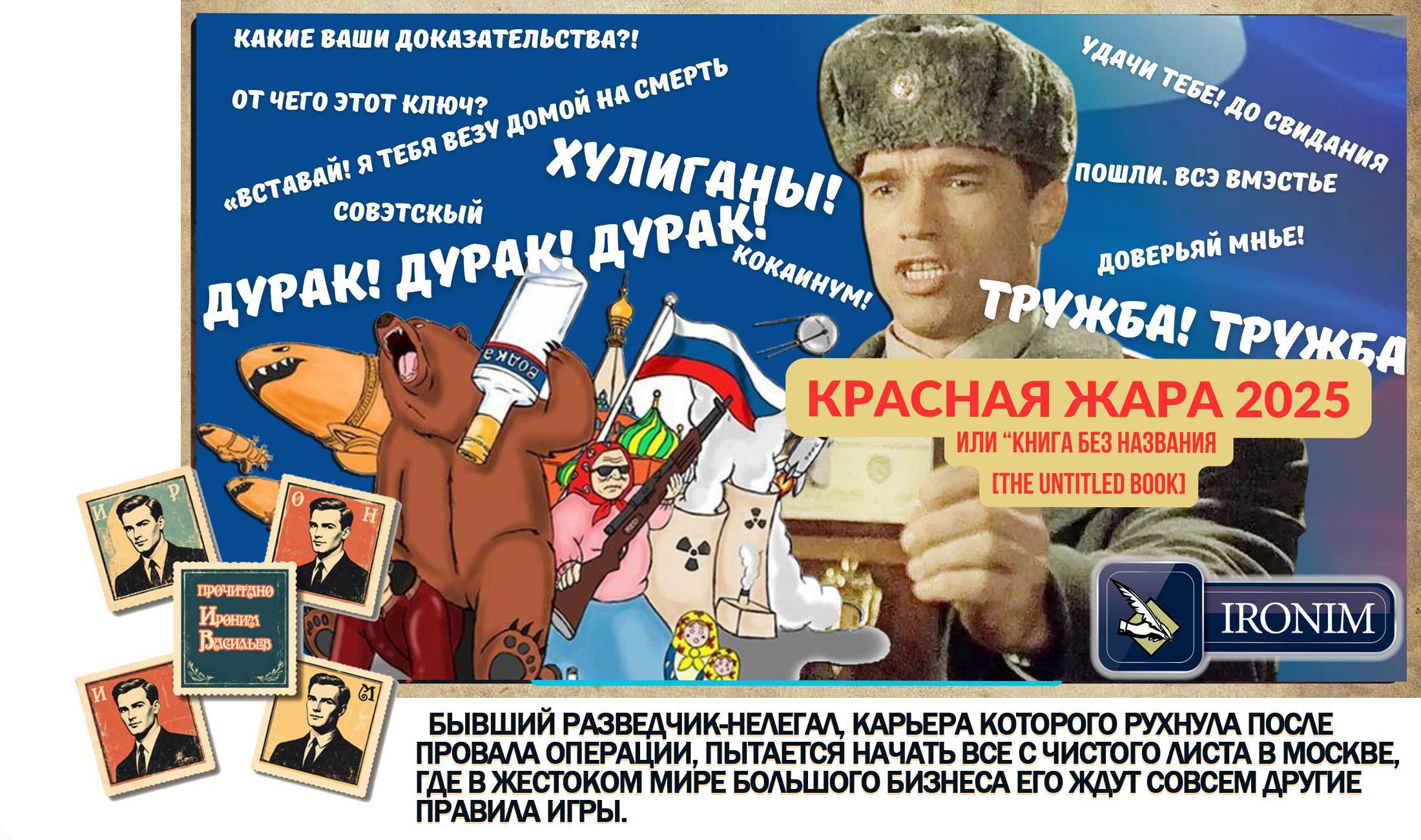 И знаете, друзья, когда я закрыл последнюю страницу, меня не покидало одно странное ощущение. Я долго не мог понять его природу, пока не провёл одну простую параллель. Помните культовый боевик 80‑х «Красная жара» со Шварценеггером? Тот самый, где СССР был показан как сюрреалистичный мир, состоящий из одних лишь стереотипов: медведи, балалайки, пьяные казаки и угрюмые чекисты.