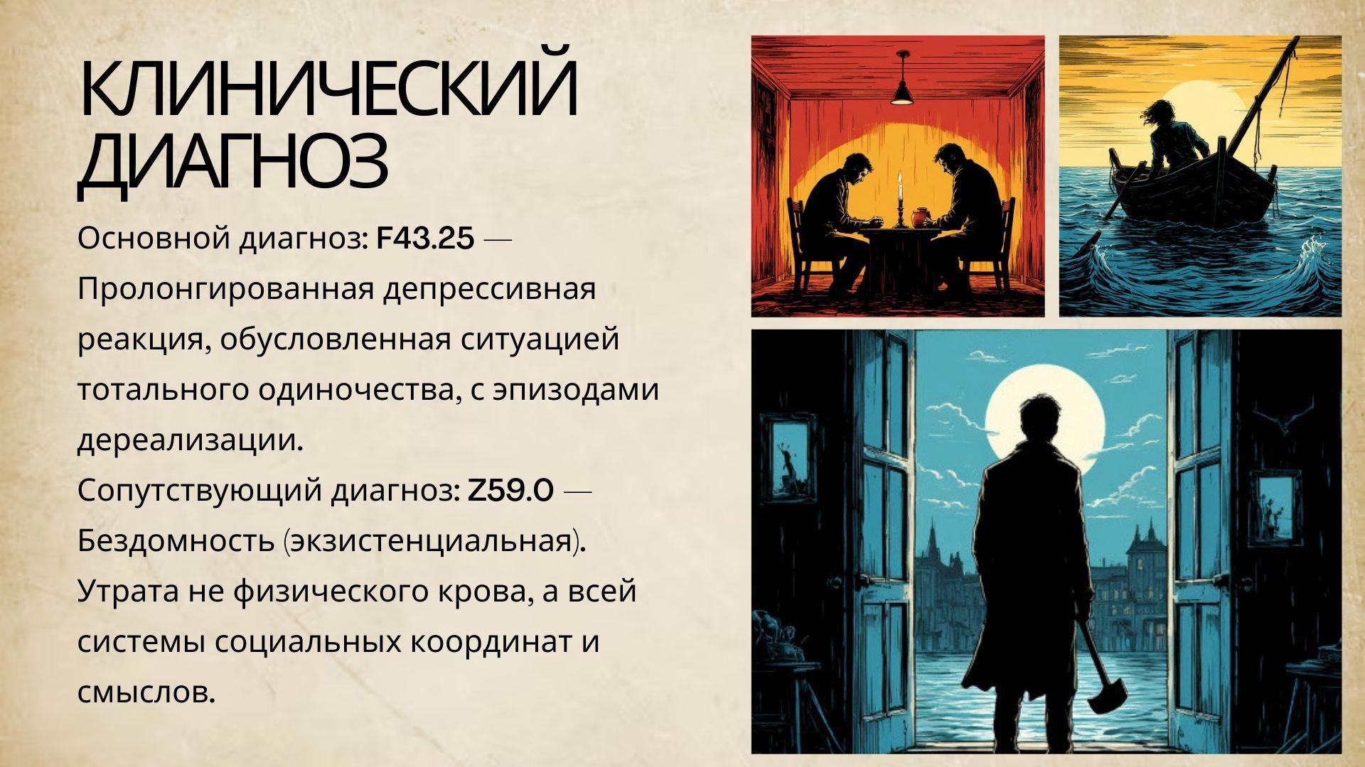 Возникает ощущение сюрреалистического одиночества, когда привычная реальность сохраняет все свои черты, но лишается самого главного — других людей. Андрей оказывается в ситуации, где физические потребности удовлетворяются странным образом. Он задаётся вопросом: