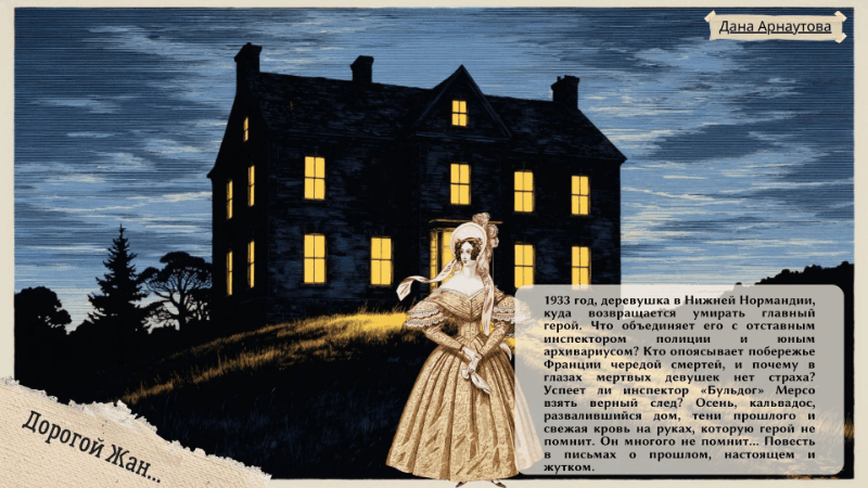 Доброго вам вечера, друзья! Сегодня у меня есть для вас прекрасная детективная повесть Даны Арнаутовой «Дорогой Жан…» — произведение, которое создаёт особое настроение осеннего задумчивого вечера, когда за окном моросит дождь, а в руках — чашка чего‑то согревающего.