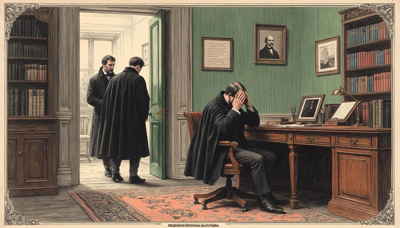 Особого внимания заслуживает тот поворот, который окончательно запутывает дело. Графиня Анна Михайловна, пытаясь передать Холмсу важную информацию, сама становится жертвой. Сцена её убийства выписана с кинематографической чёткостью: «Неожиданный выстрел, который эхом разнёсся по комнате. В следующее мгновение окно разлетелось на мелкие осколки, и графиня, вскрикнув, упала лицом на письменный стол». Это момент, когда расследование из частного дела превращается в отчаянную гонку со временем, где на кону уже не просто установление истины, а жизнь тех, кто к ней приблизился.