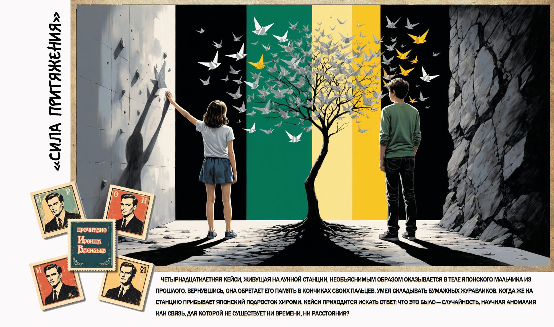 Аннотация обещает одно: космос, путешествие во времени и теле, загадку, мальчика из Японии. Крутая начинка для подросткового фантастического романа. А внутри… Внутри получается что‑то другое. Нет, все компоненты на месте: Луна, станция, девочка Кейси, её перенос в тело японского мальчика Такеши в прошлом, бумажные журавлики, загадочный Хироми. Но фокус‑то смещается куда‑то не туда. Или туда?