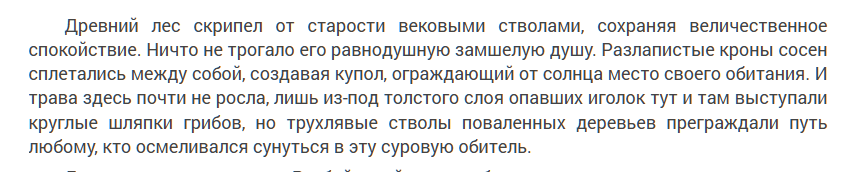 С одной стороны — у нас хороший слог, легкий, но при этом не лишенный красивостей и способствующий быстрому погружению в атмосферу.