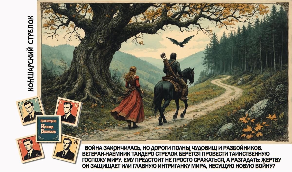 Первое, что хочется отметить — обещание, заявленное в аннотации, автор выполняет честно. Это действительно история о мире «после». После долгой, сорокапятилетней войны, которая не цветёт, а медленно залечивает раны. Дороги опасны, города полупусты, а в лесах плодятся не только разбойники, но и «нечистые звери, созданные когда‑то боевыми колдунами» — одна из самых удачных находок мира повести. Это не просто монстры, а живое напоминание о преступлениях прошлого, биологическое оружие, пережившее своих создателей. И на этом фоне мы знакомимся с Тандеро Стрелком — ветераном, который не может и не хочет делать ничего, кроме своего ремесла. Его внутренний монолог в первой главе — это ключ ко всему:
