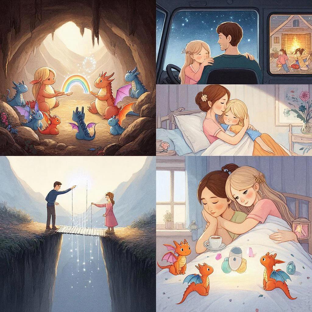Рассказ не ограничивается одной историей — мы видим, как Тикки работает с разными персонажами: рассказывает сказки малышам-дракончикам (удивительная метафора того, что "дракончики — это маленькие частички радуги"), спасает сон дальнобойщика Алекса, показывая ему образы дома и тепла, помогает маме Ани, которая забыла заботиться о себе, и даже лечит сон отца, который "строит стеклянные мосты, которые рушатся" из-за страха потерять близких.