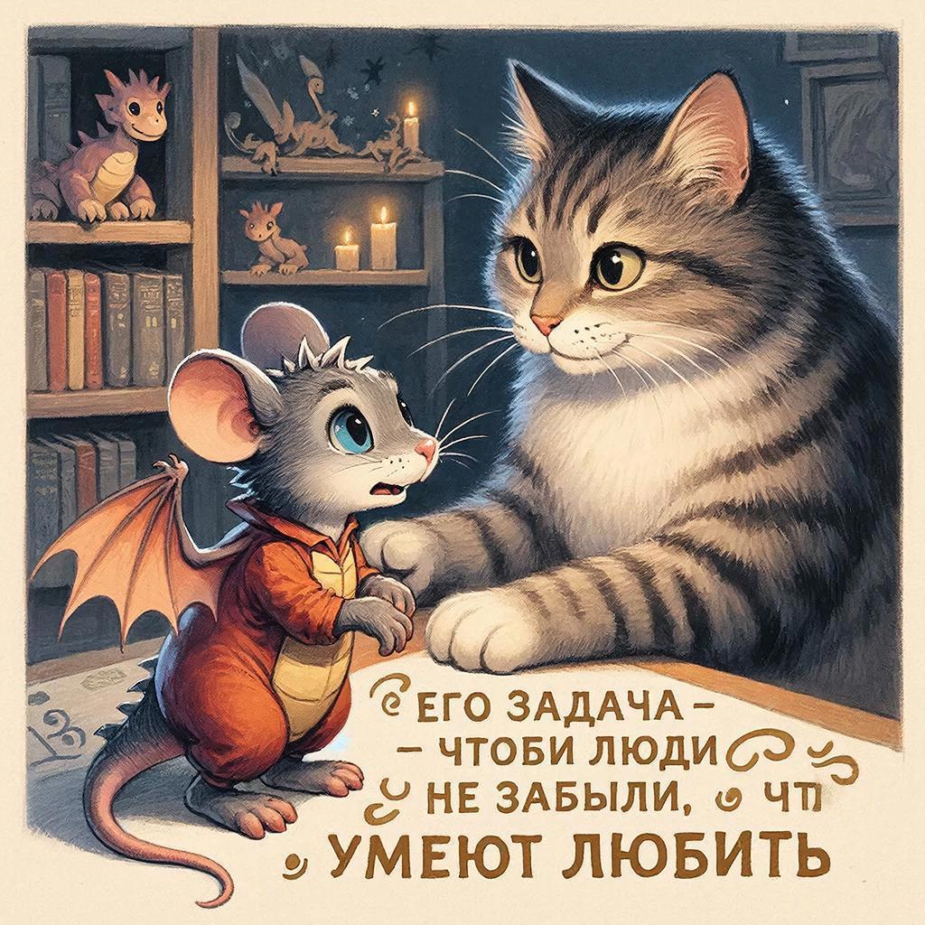 Самый глубокий момент наступает, когда мы узнаем, что даже у самого Тикки бывают страшные сны. И мудрый кот-великан напоминает ему о главном: "его задача, чтобы люди не забыли, что они умеют любить". Эта фраза становится ключом ко всему произведению. Автор показывает, что истинная магия — не в превращении в дракона, а в способности дарить тепло и веру в чудеса.