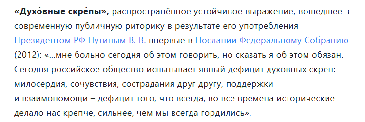 Автор в восьмой ввёл новую понятийность – духовные скрепы. Открываем БРЭ, она же БСЭ