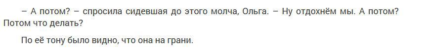 1. Читается очень живо и жизненно. Так и видишь этого пацанчика с характерными жестами рассказывающего свою историю. Сам сюжет — баланс акция/релаксация — грамотно организован и не превращается в ритмическую тряску бой/отдых, но с определённой аритмичностью событийного ряда поддерживает энергию чтения.