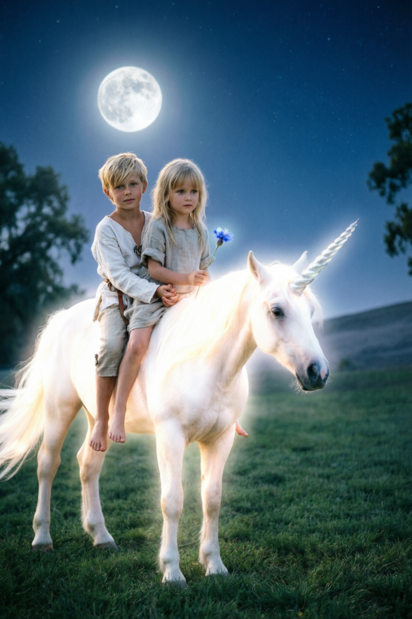 Из зачарованного леса , через облака, да по небу конёк-горбунок, тьфу...единорог доставил деток до дому.
