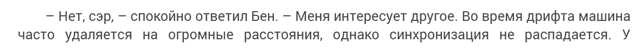 Существует рекомендация для фантастов — не объясняйте механизм действия изобретения, которого еще не существует. Обязательно найдется читатель, который лучше разбирается в указанных фактах и разгромит эти объяснения в пух и прах. Задача автора зацепить: есть официальная версия действия декодера, но в ней не все стыкуется. Оказывается декодер отключен, а дрифт возможен, значит, функция декодера в другом (я так поняла). Если же рассказывать про пейсмекеры, синусовый ритм, синаптическую передачу и т.д. у читателя возникает желание разобраться в механизме, и тогда пиши-пропало. Полезут вопросы и нестыковки. Например: декодер как пейсмекер — очень интересно, но дальше абсолютно непонятно. Пейсмекер задает электрические импульсы. Согласна, что в таком случае блокируются собственные электрические процессы. Как останавливается метаболизм? Он не подвластен волновому воздействию, это в основном химические ферментативные реакции. Если залезть в синаптическую передачу, то таких вопросов можно накидать еще десяток.
