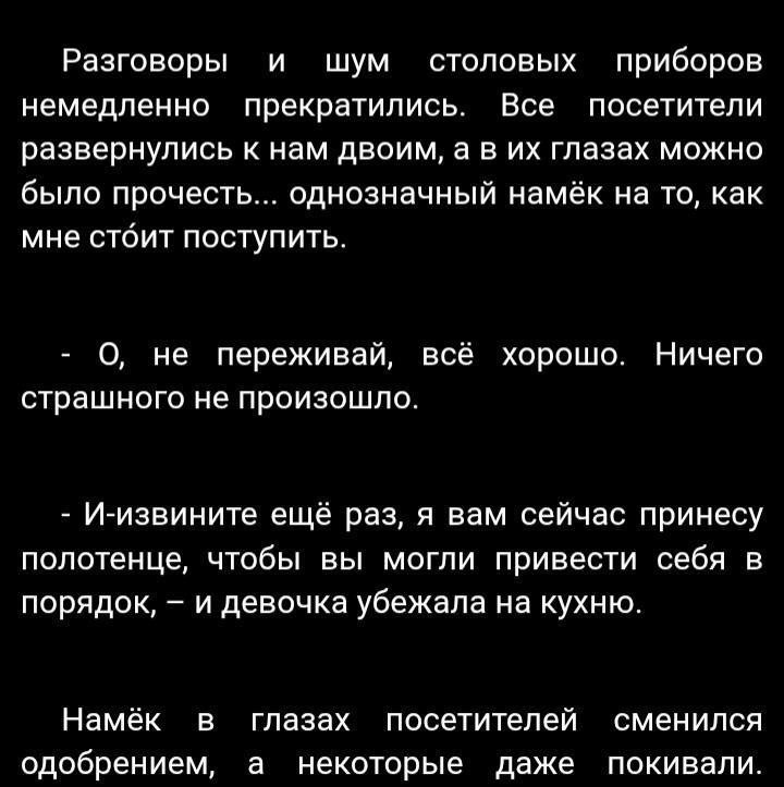 Никогда не играл в игру, по которой пишется фанфик, но вот в этом моменте на мгновение мелькнула мысль, что фентезийное средневековье там прямо оочень лёгкое. На последних строках первого абзаца думал, что все ждут расправы от гг, а после его фразы, что все скривят морды. Вот правда. До последнего ожидал что-то такое, а не вот это вот...