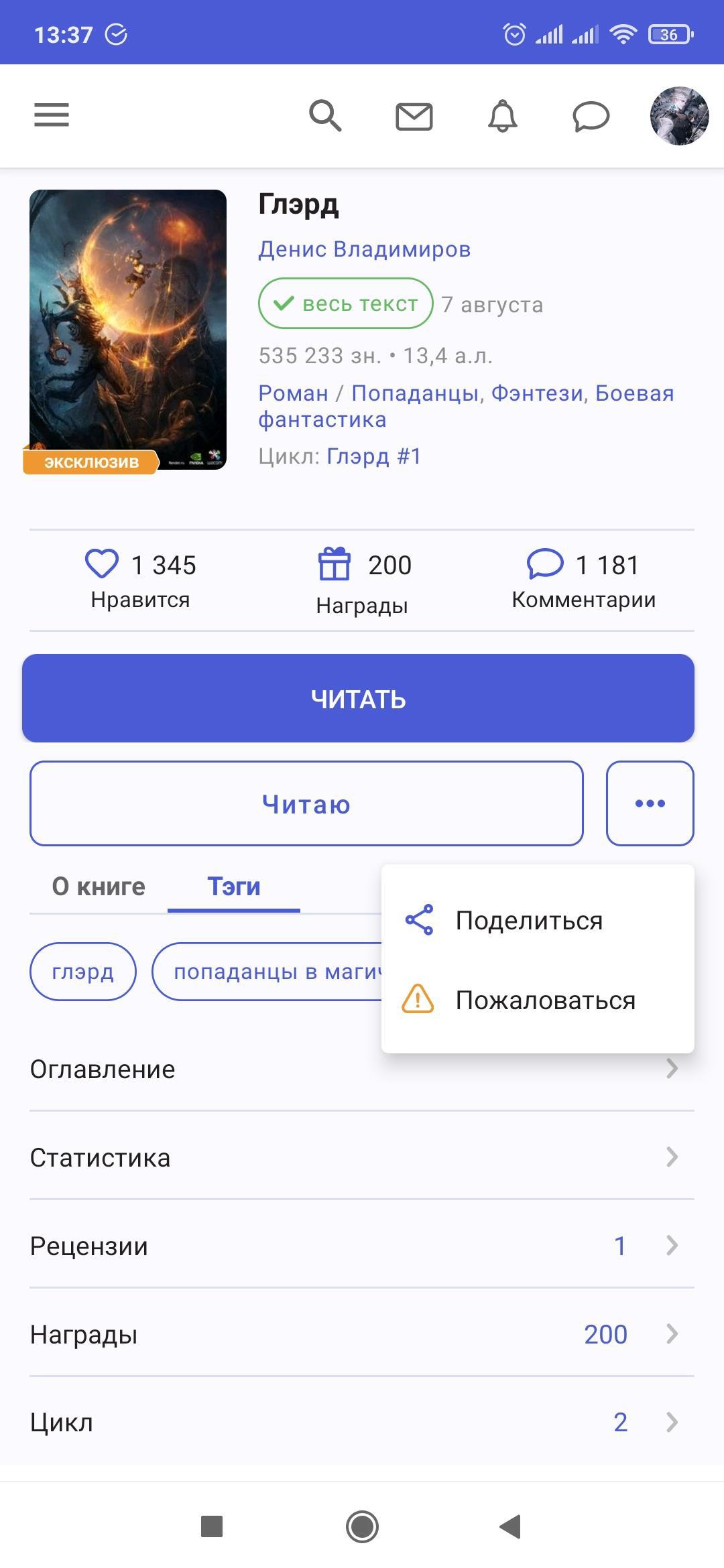 Приятно когда автору важен каждый читатель.