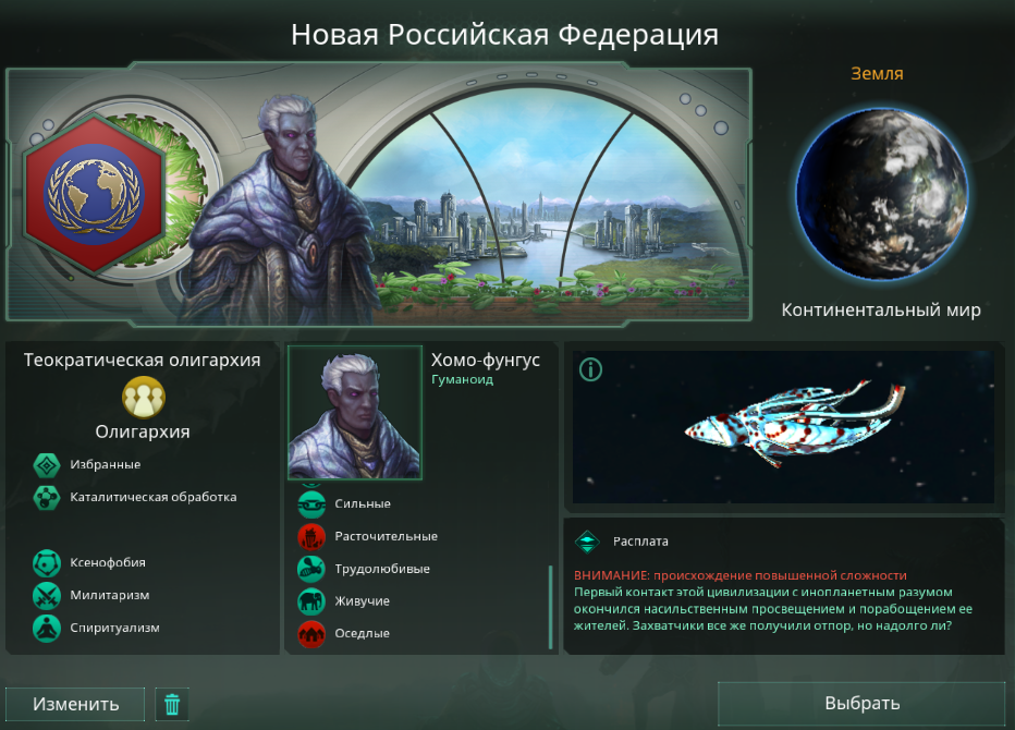 Цивилизация людей-фунгусов в реалиях Стелларис. К сожалению, никаких цивиков и трейтов нет, чтобы напрямую отыграть гриба-симбионта-покровителя, но нечто схожее можно организовать, если через избранных заключить договор с Прядильщиком Нитей (Псионической сущностью, олицетворяющий жизнь и природу)