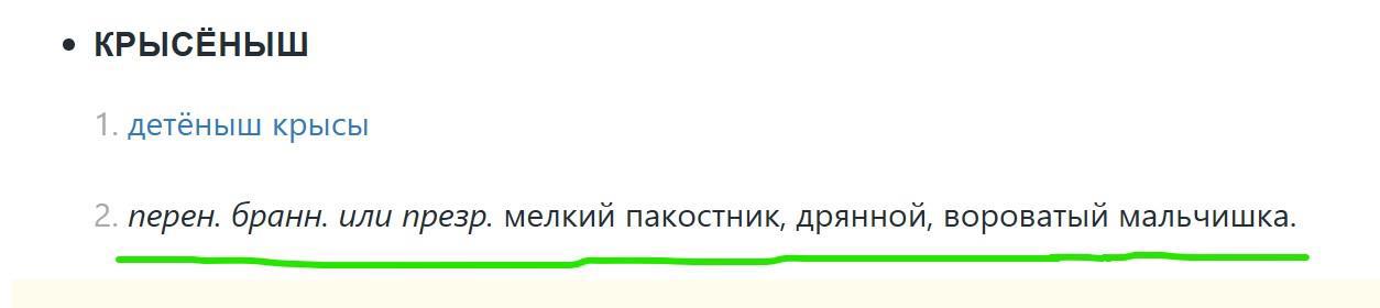 И я вам выше скриншот даже выложил со вторым значением слова крысёныш.