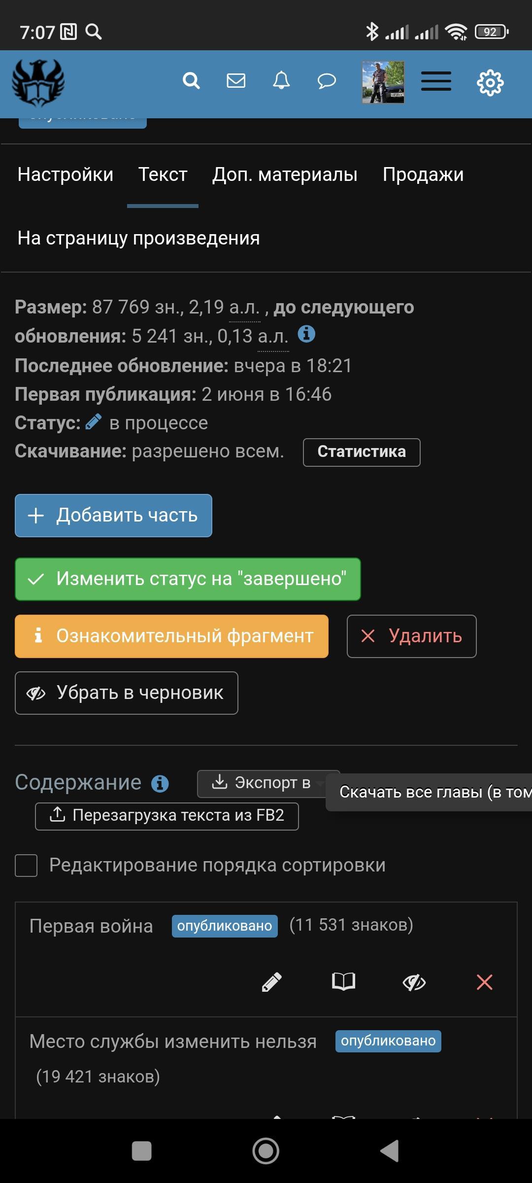 Ещё один совет который подсказали. Допустим у вас глава состоит из 25 тысяч знаков. Выкладывание сначала 15 тысяч, чуть позже оставшиеся 10. Зачем так делать, ответ прост. Если выложить сразу все 25, то счётчик в следующий раз все ровно покажет до следующего обновления потребуется 15 тысяч, а если сделать как сказал я и разбить на 2 части , то в следующий раз будет показывать всего 5.