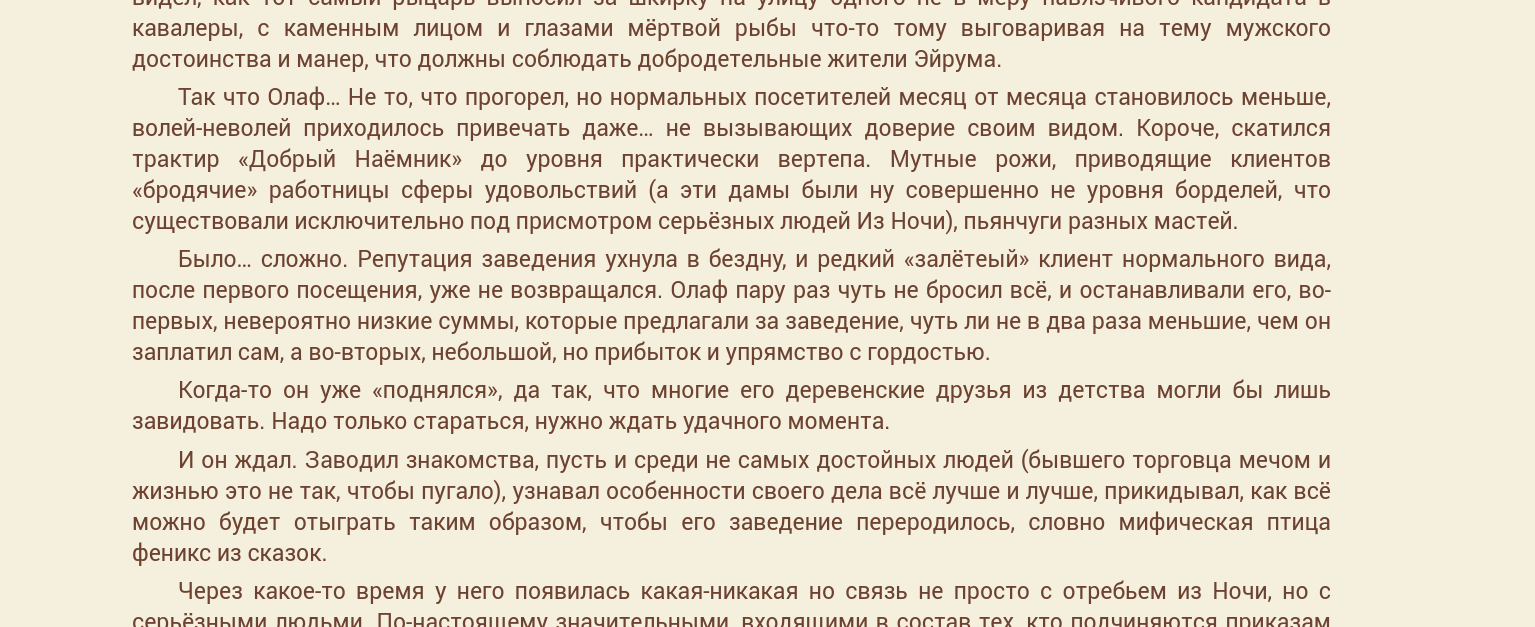 Блин. Рассыпались мои шипперные надежды на Амона и гг. Они ж оба с пути мародера.... Пока один не подчиниться правилам другого - никакого шипперства. Автор! Это был самый подлый удар в сердечко! Так обидно. Мои шипперские надежды...