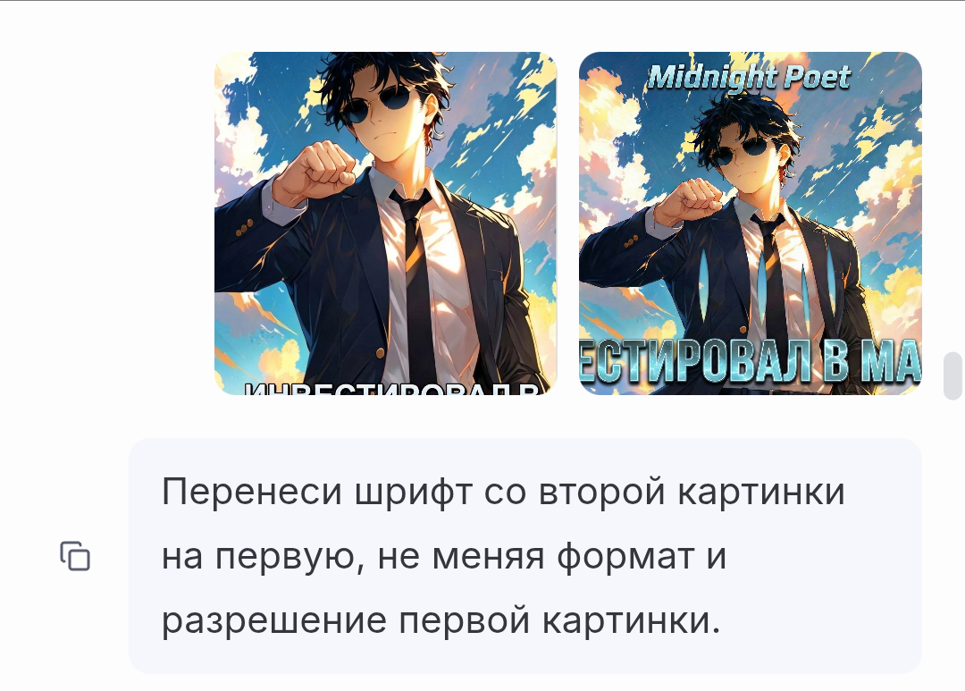 3) Ну в потом просто задал Банану задачу перенести полученный шрифт на первую картинку.