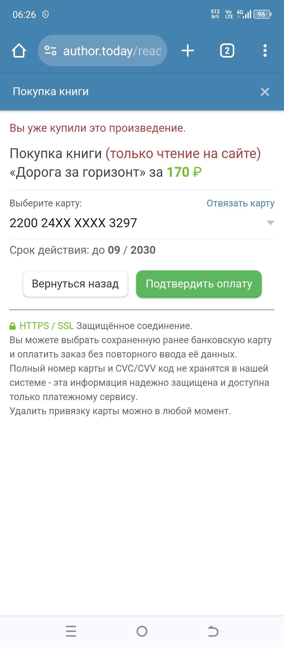 Сайт чудит. Купил книгу, но читать дальше не дает. Предлагает снова купить. Попробовал, вот что сайт пишет: