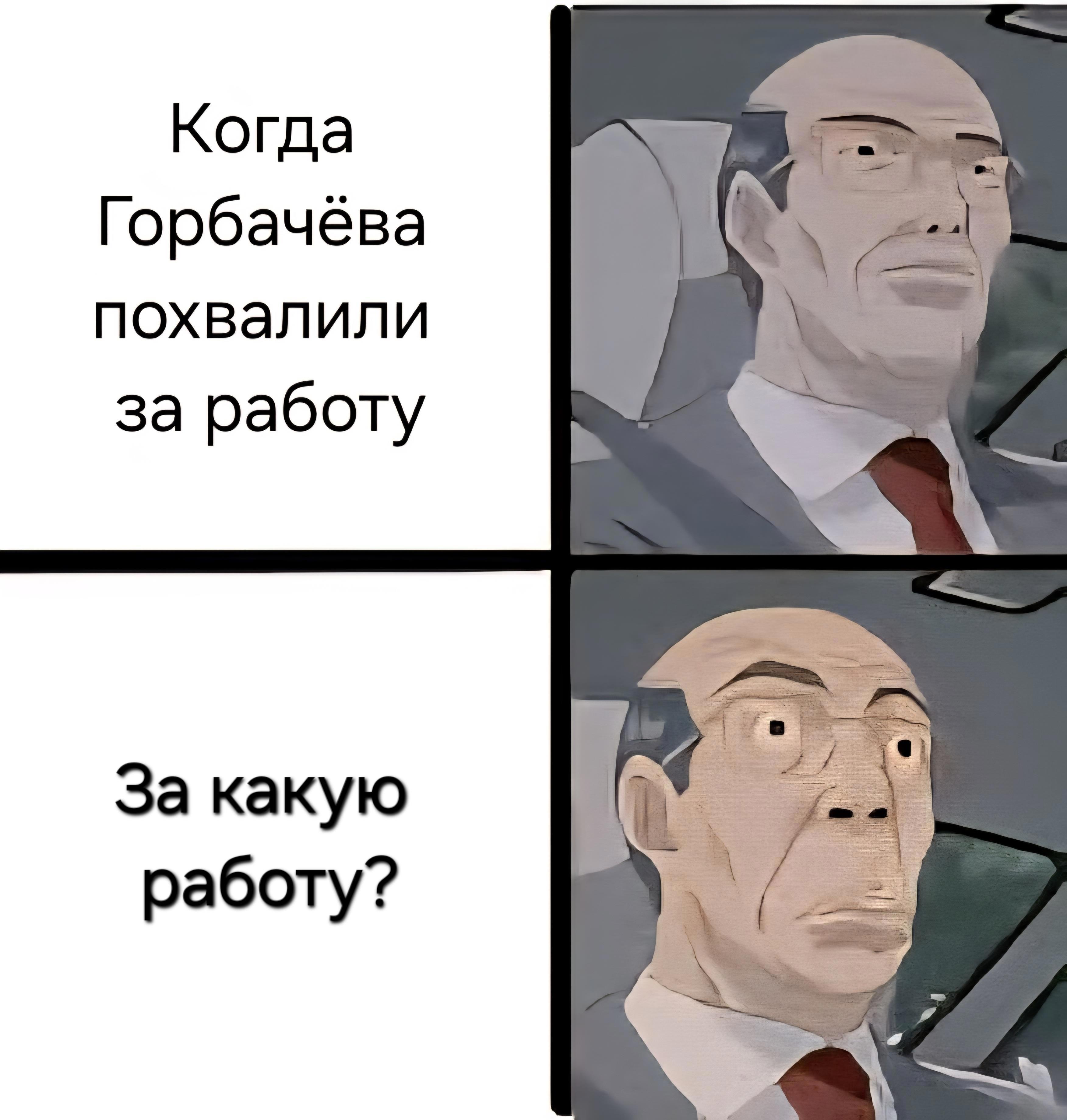 Боже, Ред, пожалуйста, оставь Горбачёва как болванчика. Как же я проржался с того, что ему сказали "спасибо за вашу работу". Просто выдумай ему должность и в конце каждой встречи и заседанию по регламенту пусть каждый будет подходить и говорить "спасибо за вашу упорную работу, товарищ Горбачёв" и жать руку, а он будет до конца просто крепить лицо кирпичом и делать вид, что он что-то решает.