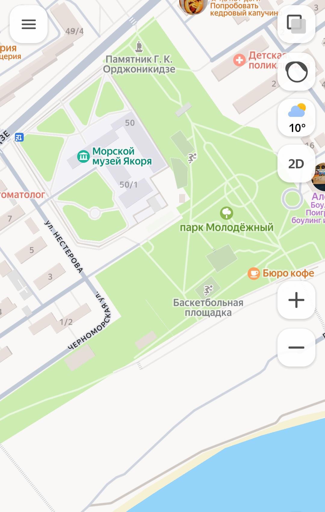 ( Я, кстати, сказал девочкам из кафе - наймите человека, пусть он вам обрежет лишнии ветки - сделает нормальный обзор моря )Да, и парк , примерно, +50 метров над уровнем моря.