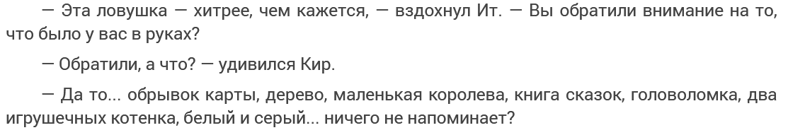 А что если в этом куске из "Аданая и Альтеи" предметы символически отсылают не только к прошлому, но и к текущему моменту? Королева и Бао помогут ГГ попасть на уровень выше. А книга сказок - "Азбука для побеждённых".
