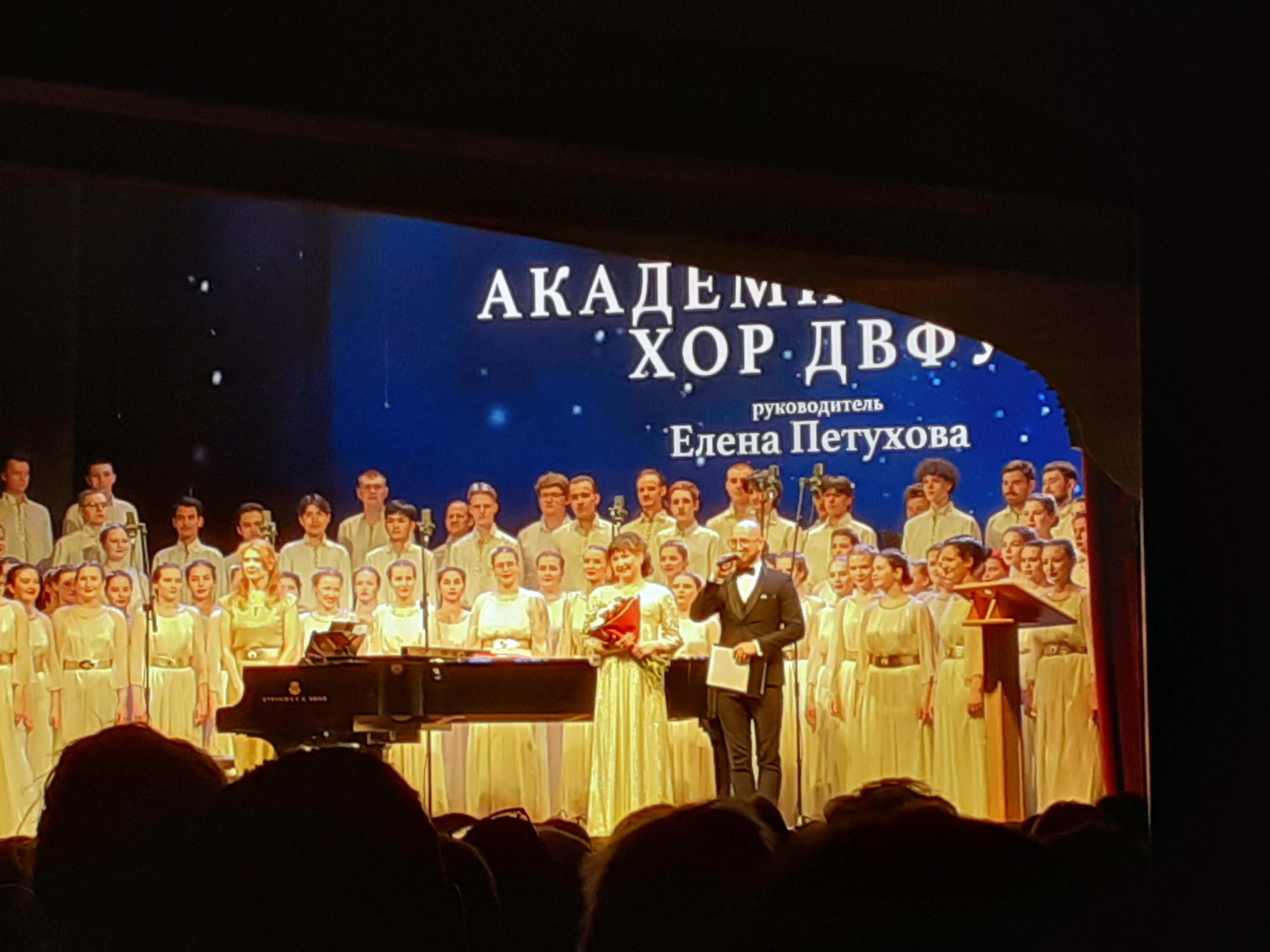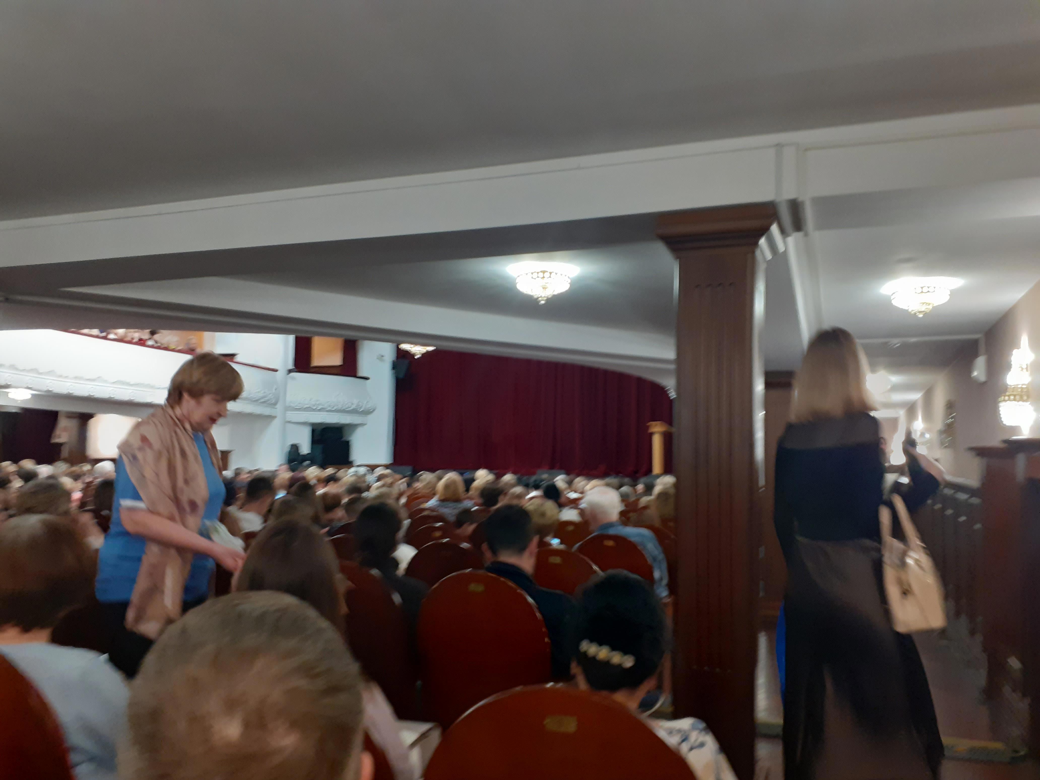 Зал был полный. Зрители, это все родители и близкие хористов. У меня тоже там в хоре родственник. Сам я смотрел с последнего ряда. Все самые лучшие места были выкуплены очень давно, а я, получается, с рейса недавно вернулся, о билете не позаботился.