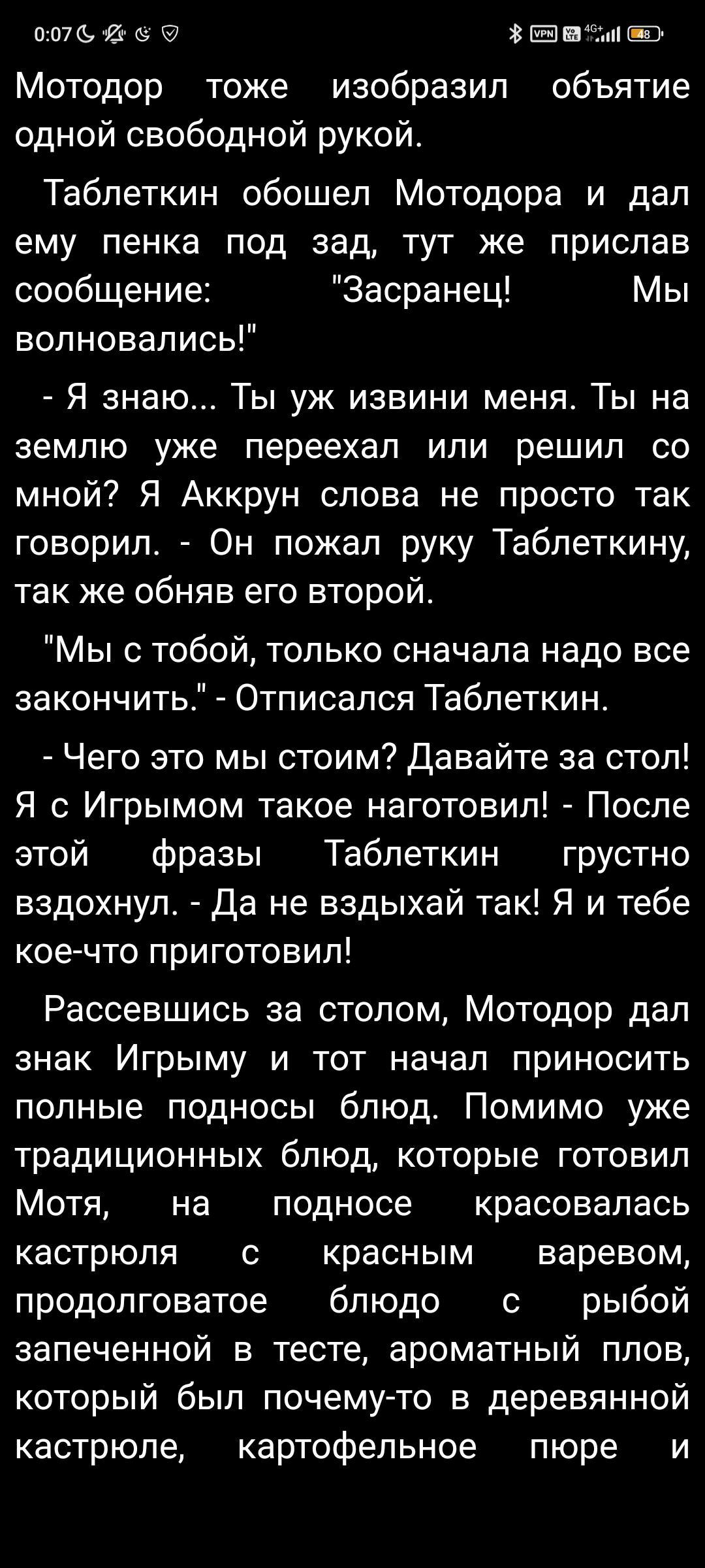 Один минус. Профессор Преображенский - отнюдь не положительный или тем более приятный персонаж. Я имею ввиду из фильма или из классики. Довольно безответственный и эгоистичный тип. Надеюсь, что дальше по (вашей) книге его будут звать проф, а не полным ником.)