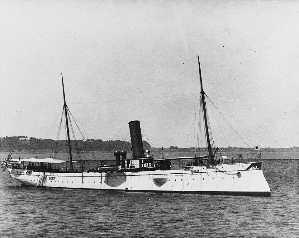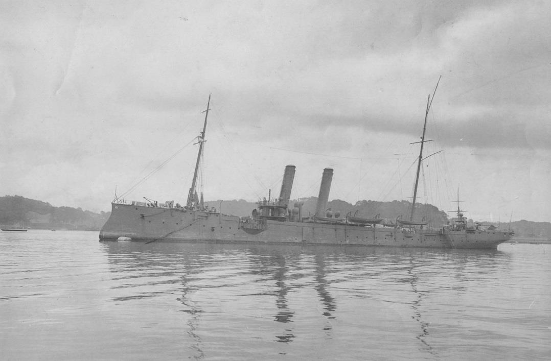 Вообще-то я был уверен что на фото Yaeyama (Яейяма, Йаэйама? даже не знаю как это по-русски и написать-то; поизносится Йяма) --- она как раз где-то там, где-то в тех местах, и была в реальной истории. По постройке то ли минный крейсер, то ли безбронный крейсер; позже деклассифицирована в авизо. С 20 узлами и 3х120мм пушками, Для отряда Беляева это смертельно опасный противник. (есть мнение что в 1902 стало на одну 120мм больше --- на корме добавили. Но достоверных подтверждений тому нет.)