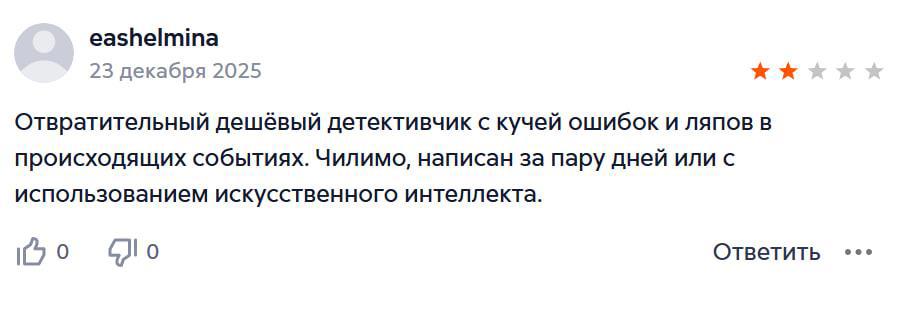Удалить и заблокировать, к сожалению, не могу, отзыв оставлен на ЛитРес. 5 минут поиска по логину дало мне понимание, что человек работает преподавателем в ВУЗе. Вероятно, это профдеформация в сессионный период - всё перечеркать и написать "отвратительно, пересдача".
