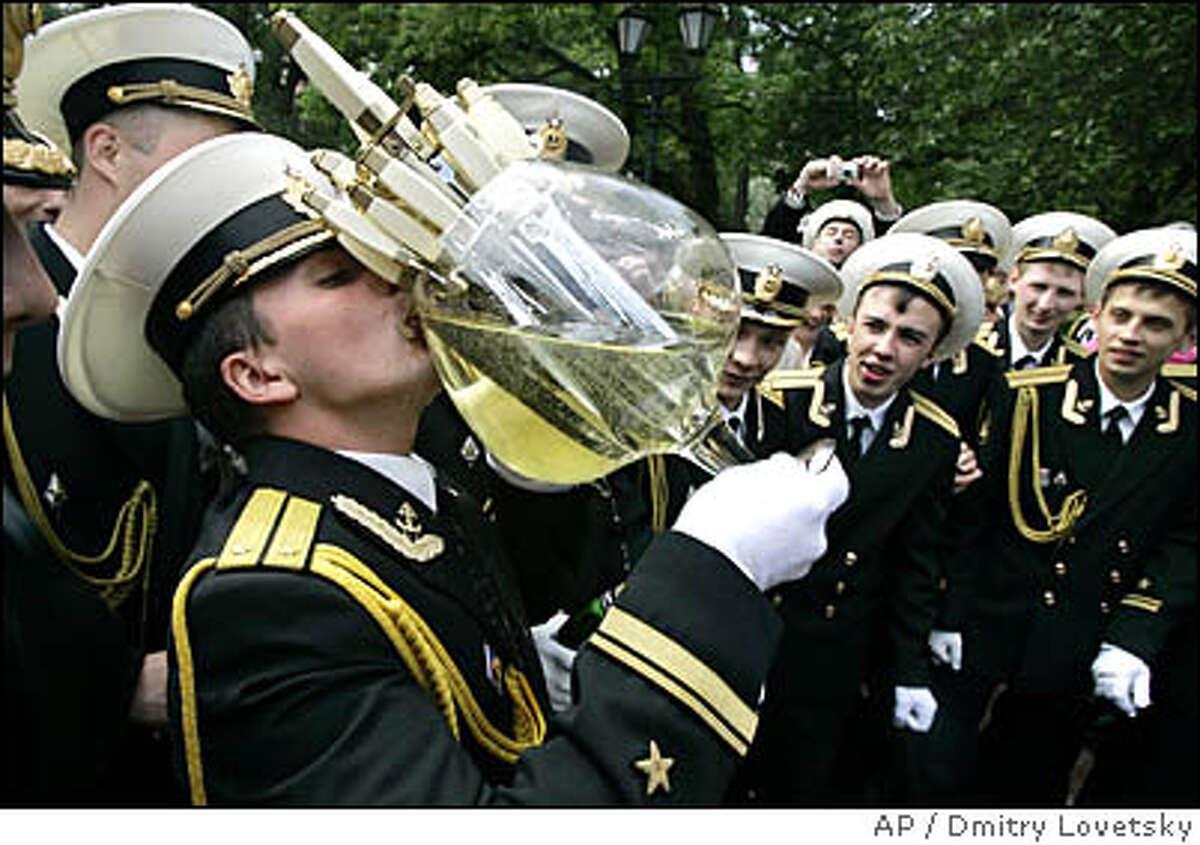 Традиция есть, но вот насчёт советских курсантов сомнения. Вот версия фото с атрибутами автора