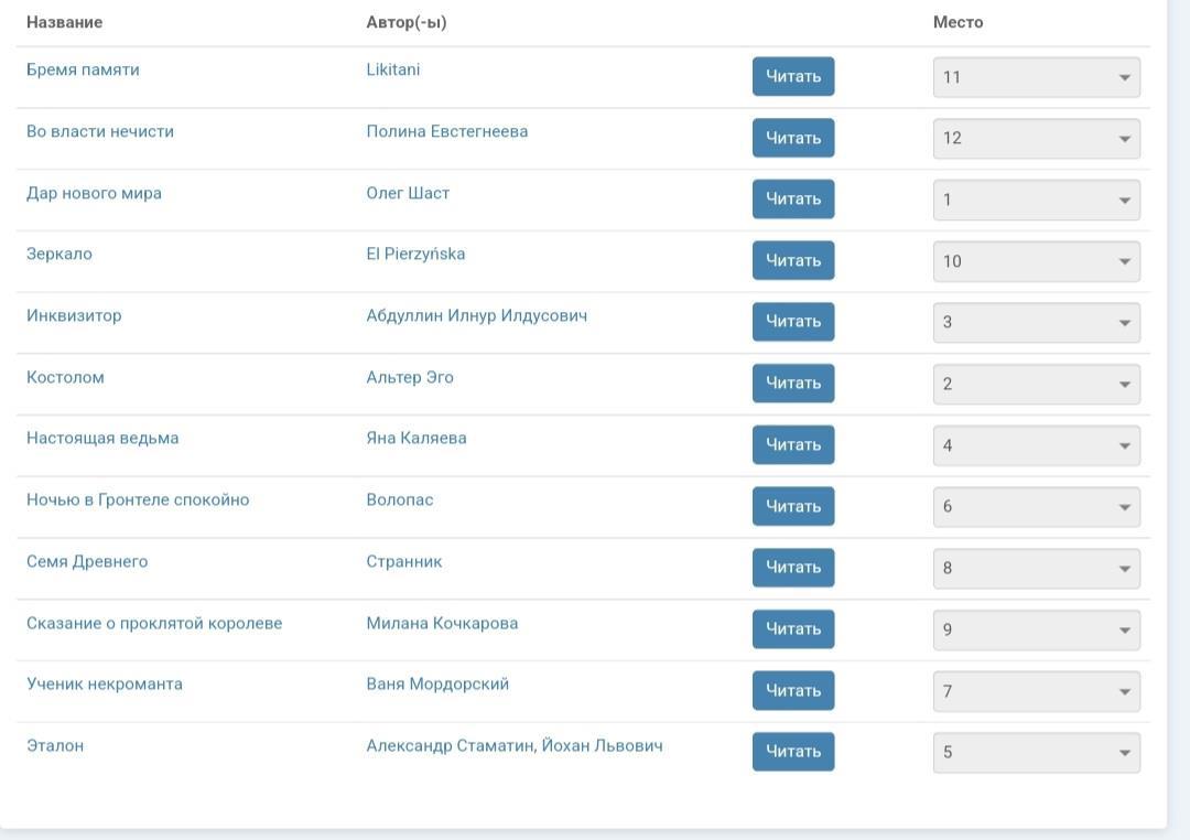 Крайне интересными и неожиданными оказались оценки. Мой рассказ получал у самосудей как первое, так и одиннадцатое место. Итоговое четвертое место кажется неплохим результатом, если учесть, что рассказ писался на коленке в перерывах от работы 😅
