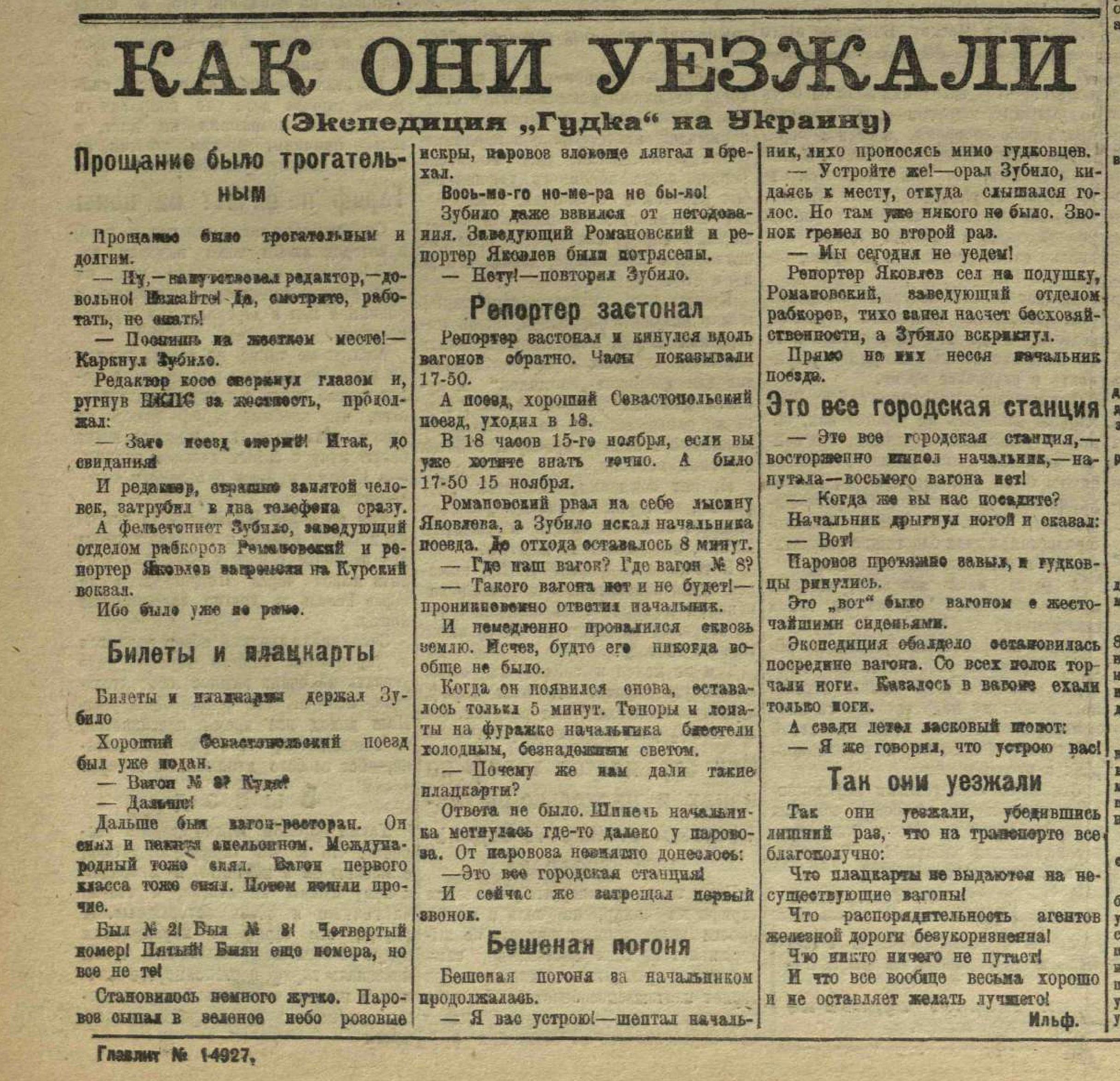 Простите, что с таким запозданием, но при первом чтении как-то не обратил внимания. Это к главе 13-й. Первая заметка, подписанная псевдонимом "Ильф", появилась в "Гудке" 17 ноября 1923 года. Ранее Илья Файнзильбер этим псевдонимом не пользовался, и, натурально, никто его так не звал.