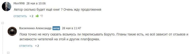 Дело тут не в критике каких-то слабых мест. Я с многими слабостями готов согласиться. Но когда человек пишет откровенную чушь или ложь - это неприятно. Доказывать каждому в комментариях, скринами кусков текста что-то? Пффф... Увольте. Я не буду этим заниматься. Я неплохо помню о чём писал и как писал. Не осилили дальше второй главы? Дай вам бог здоровья и идите обратно читать гаремники, про героев не дибилов с системой из РПГ, прокачкой, вставкой шаринганов во все дыры и доминаторов в 10 лет над всеми пятью кагэ...