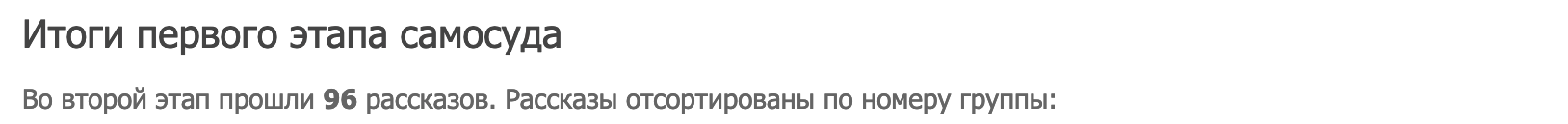 В моей подсудной группе был рассказ, написанный то ли ребенком, то ли... ну вы поняли. Ошибок океан, я уж молчу про стилистические, там грамматика такая, что ворд алел, не иначе. Повествование вечно сбивалось с 1-го лица на 3-е, сюжет... вряд ли автор знает, что это такое. В общем, рассказ почти все одногруппники оценили по достоинству — 10-е место. Да и автор, похоже, понял ошибку и не только снял работу с конкурса, но и удалил с сайта.
