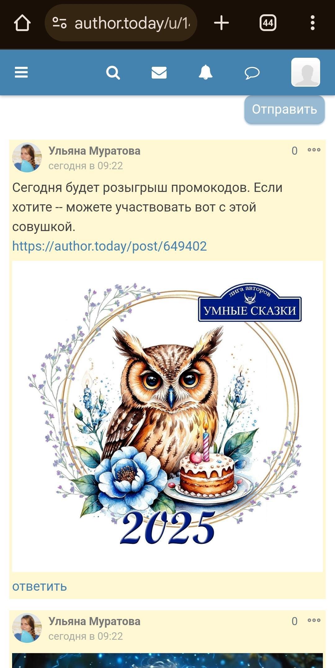 Написал(-a) комментарий к посту Лотерея "Ситцевая сова 2025" начинается!