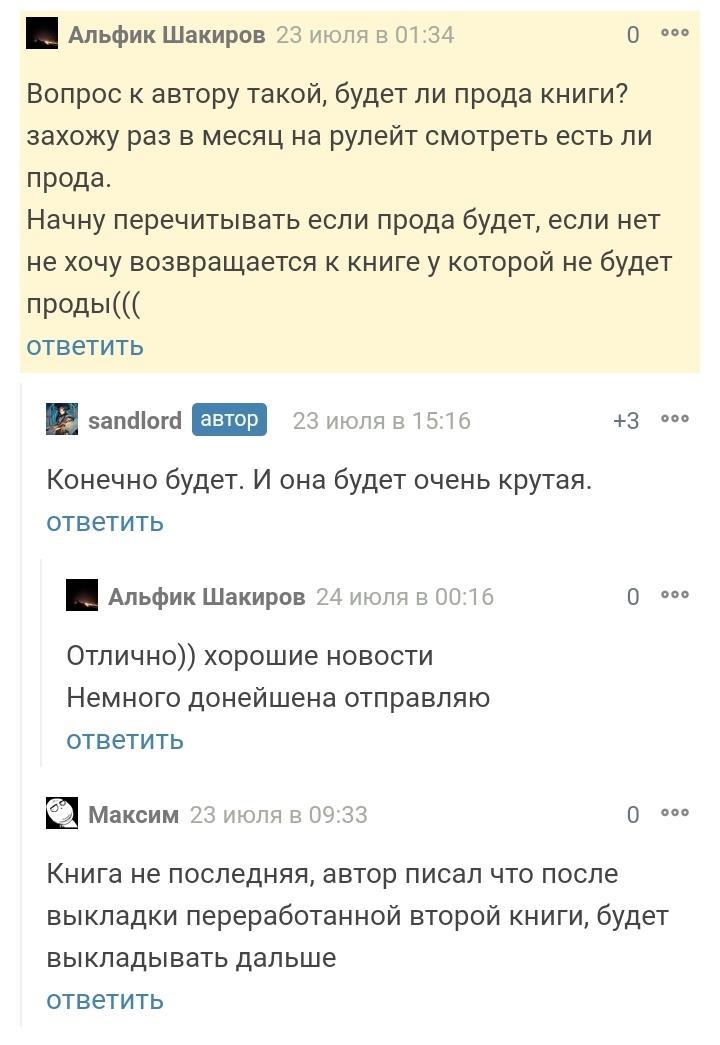 Вопрос к автору такой, будет ли прода книги? захожу раз в месяц на рулейт смотреть есть ли прода.