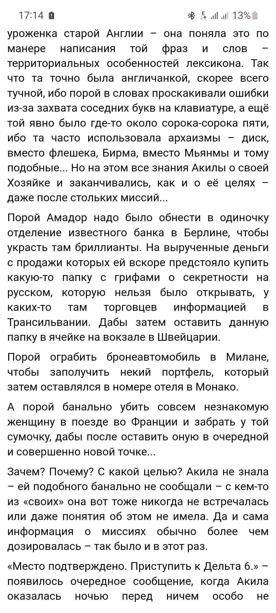 Книга хороша, весьма даже хороша. В последнее время мне сложно найти хорошую книгу, в основном перечитываю старое, но это... Эта книга меня удивила, читается очень даже легко, много драйва, хороший сюжет, в общем кайф.