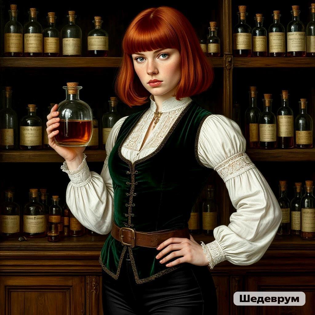 Микстура в руках у Елены больше похожа на коньяк. Как и содержимое полок за спиной.