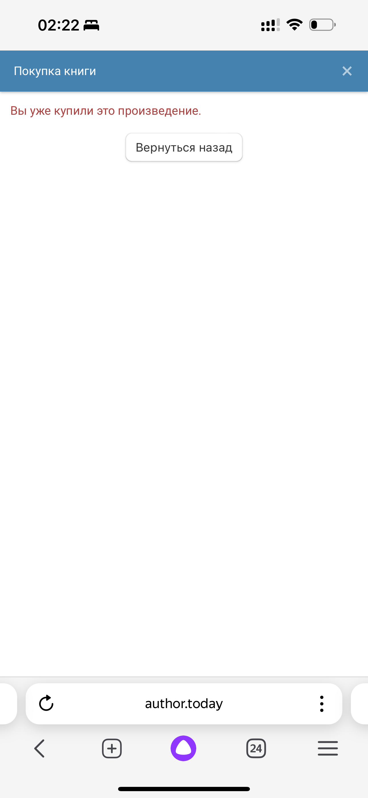 Купил произведение но не могу читать, сейчас ова говорит оплатить, но даже оплатить не могу, говорит что уже купил …