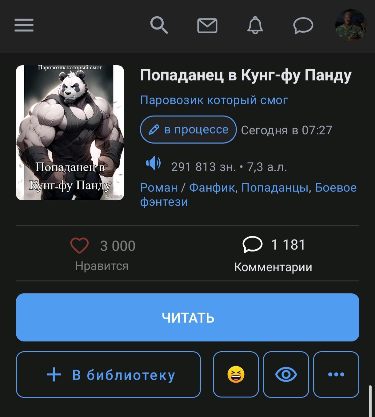 Написал(-a) комментарий к произведению Попаданец в Кунг-фу Панду