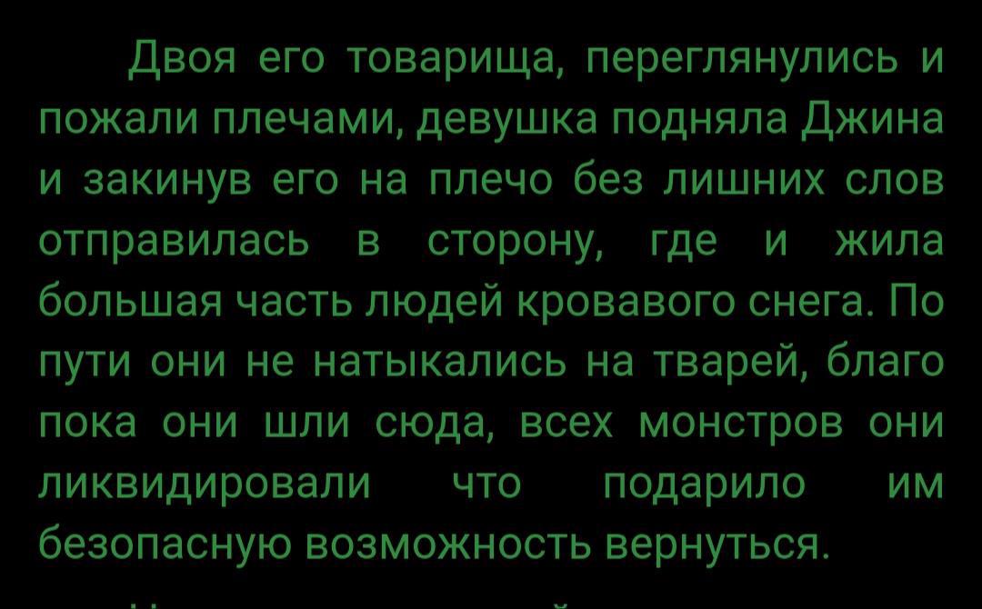 Автор.... ты такая ленивая панда шо писец, только что прочитал главу и у меня настолькое сильное желаение появилось дое*аться до тебя за такую частоту выхода глав и из-за их размера