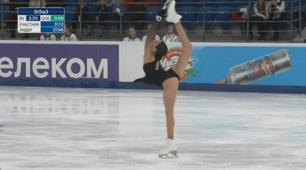 В реальном ЦСКА хорошая юниорка София Дзепка. Высокая, артистичная и двумя квадами владеет. Почти Сотка ) Недавно всех обыграла на кубке Первого канала. Показалась стабильной девушкой с крепкими нервами, а потом ютуб подсунул мне это -