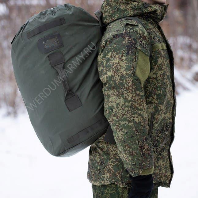 По сути, это тот же сидор, только большой и сугубо для переноски шмоток. Так что и требования к таким баулам те же - чтобы было достаточно крепко и надёжно, но при этом максимально просто и дёшево. А удобство... Ну, 10-12 кг своего шмурдяка солдатик уж как-нибудь пронесёт полкилометра от машины до казармы и на одних лямках, не переломится. )