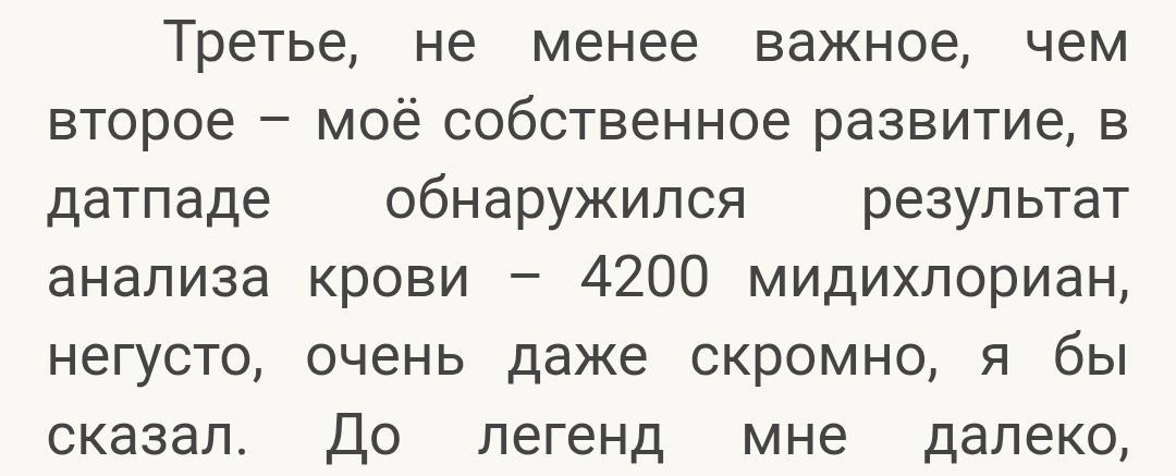 И тут ГГ увидел свои 4200 мидихлориан и такой...