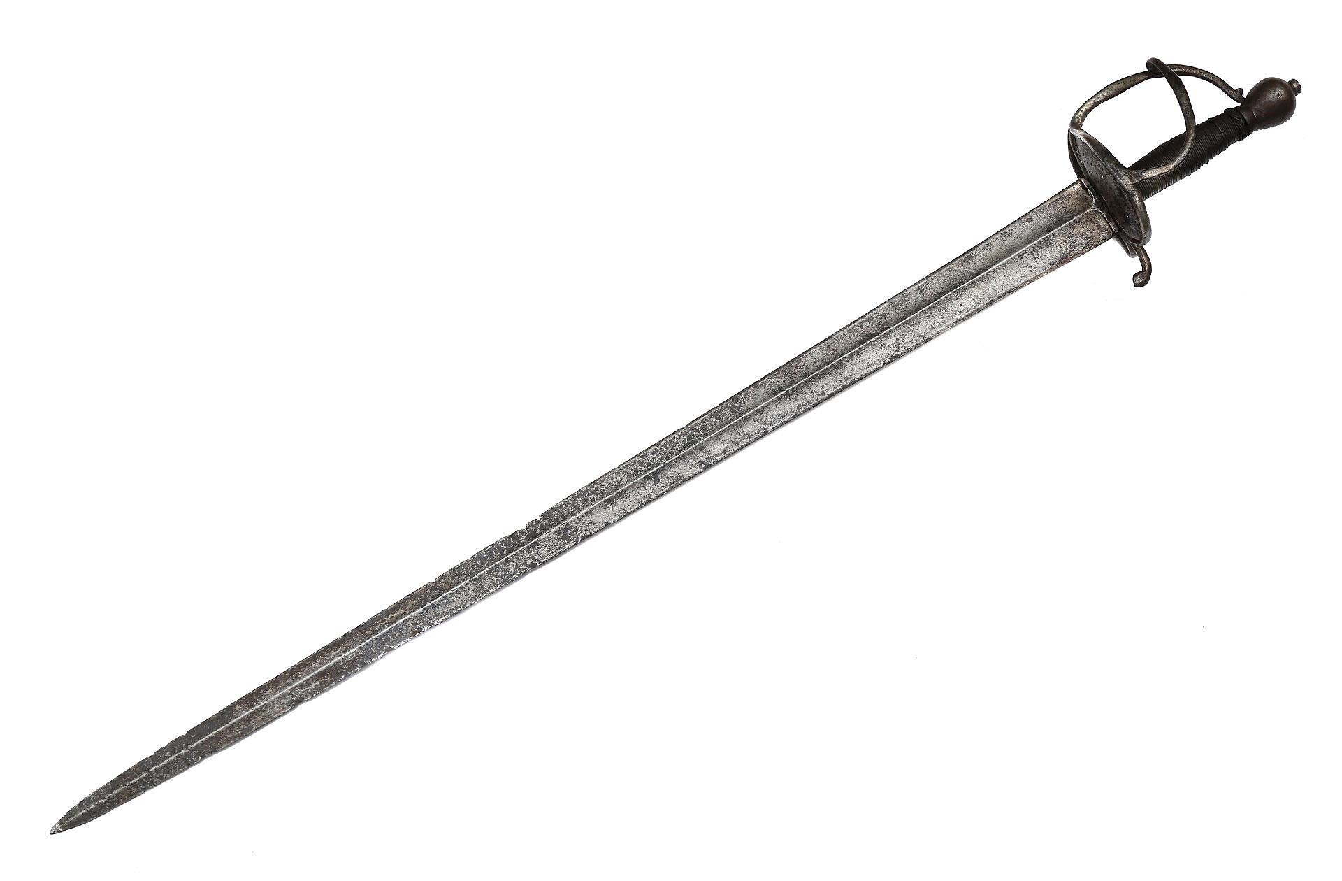 Конкретно этот образец из собрания нью-йоркского Музея Метрополитан, инв. № 14.25.1084. Длина оружия 1082 мм (42 5/8 in.); длина клинка 904 мм (35 5/8 in.); ширина эфеса меча 121 мм (4 3/4 in.); глубина эфеса меча 121 мм (4 3/4 in.); вес 680,4 грамма (1 lb. 8 oz.). По всей вероятности клинок несколько младше эфеса. Примерно лет на 30-40. Этот меч это уже почти "дворянка" (smallsword). На клинке нанесены следующие надписи: TOMAS/ (de)AIALA