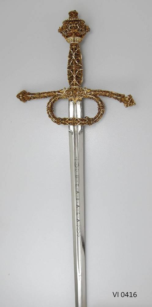 Клинок рапиры прямой, стальной, двулезвийный, узкий, с явно выраженным острием. В поперечном сечении клинок шестигранный на 6/7 длины, на 1/7 от острия - ромбовидный. Примерно на 1/4 длины, от рикассо, по обеим сторонам клинка, идет один глубокий медиальный дол, вкотом нанесена надпись «Tomas de Aiala». Томас де Айала знаменитый испанский клинковый мастер из Толедо, придворный оружейник испанского монарха Филиппа II.