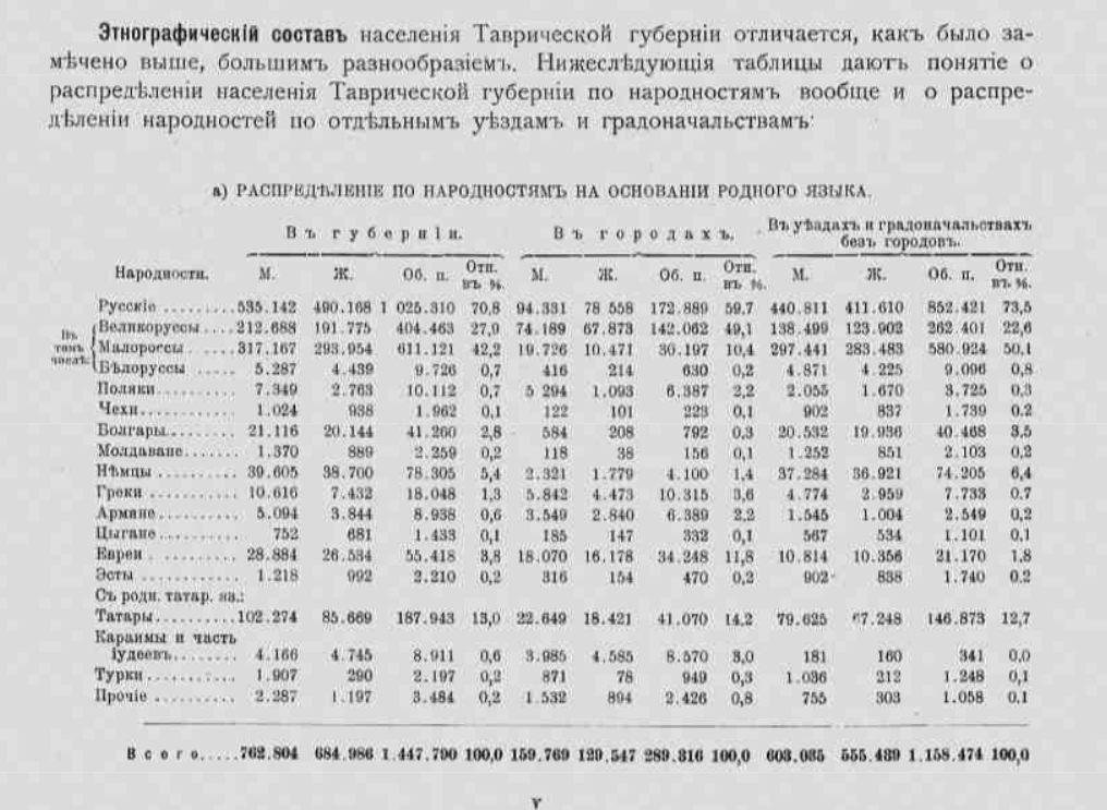 Вот население Таврической губернии по переписи 1897 года (конец 19-го века)